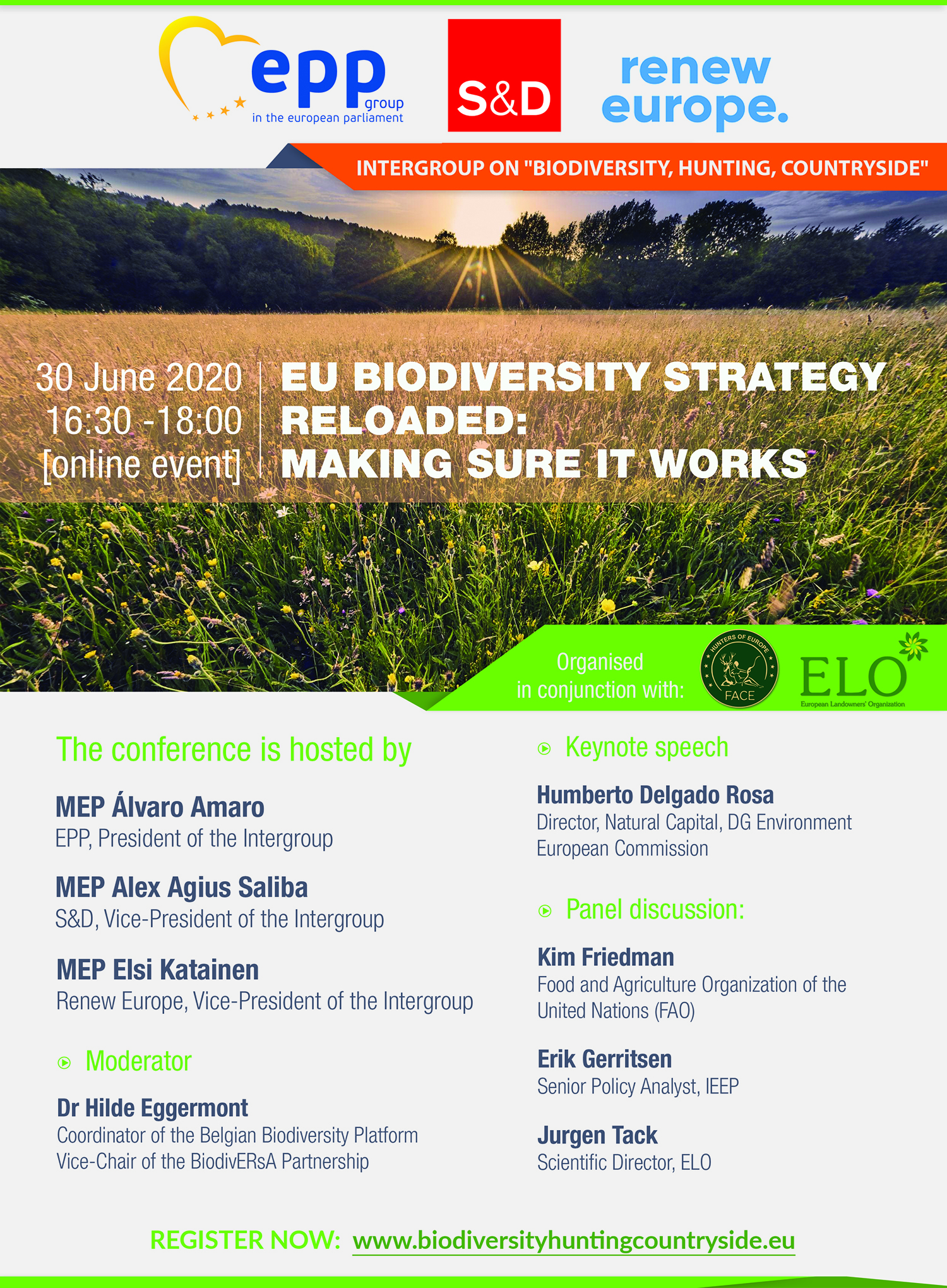 Conferência online promovida pelo intergrupo no Parlamento Europeu “Biodiversity, Hunting, Countryside”, em parceria com o ELO – European Landowners’ Organization e o FACE – European Federation for Hunting and Conservation.