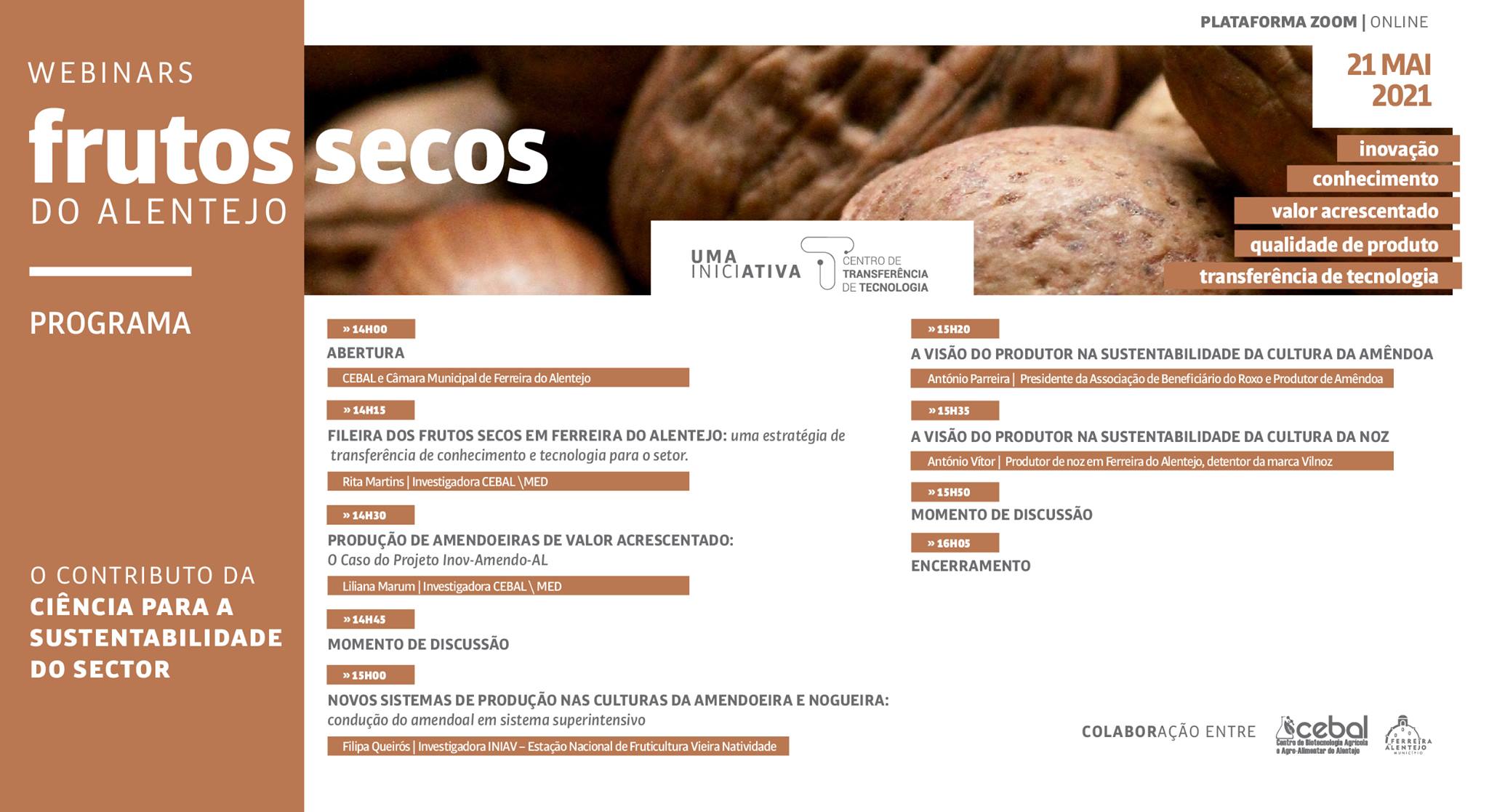 O CTT – CEBAL em parceria com o Município Ferreira Do Alentejo está a promover dois webinars dedicados à fileira dos frutos secos no Alentejo.