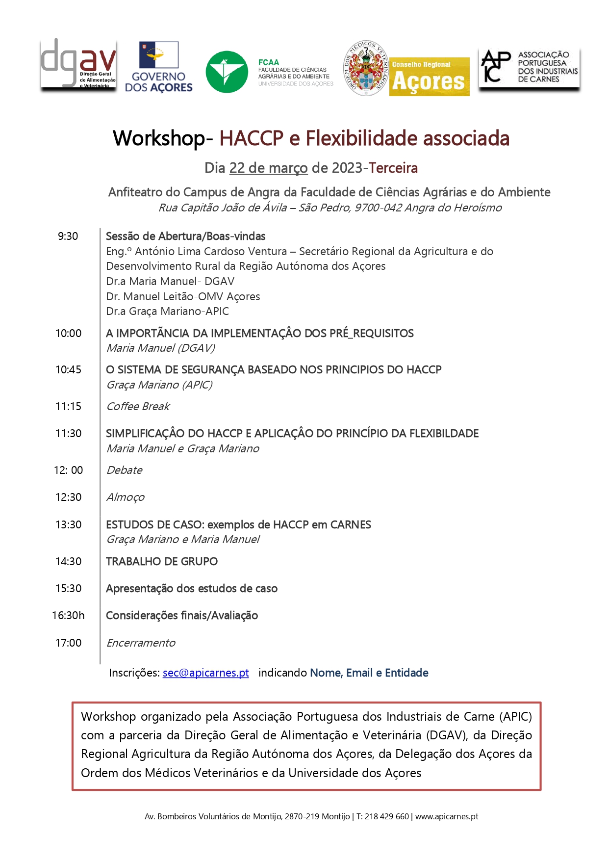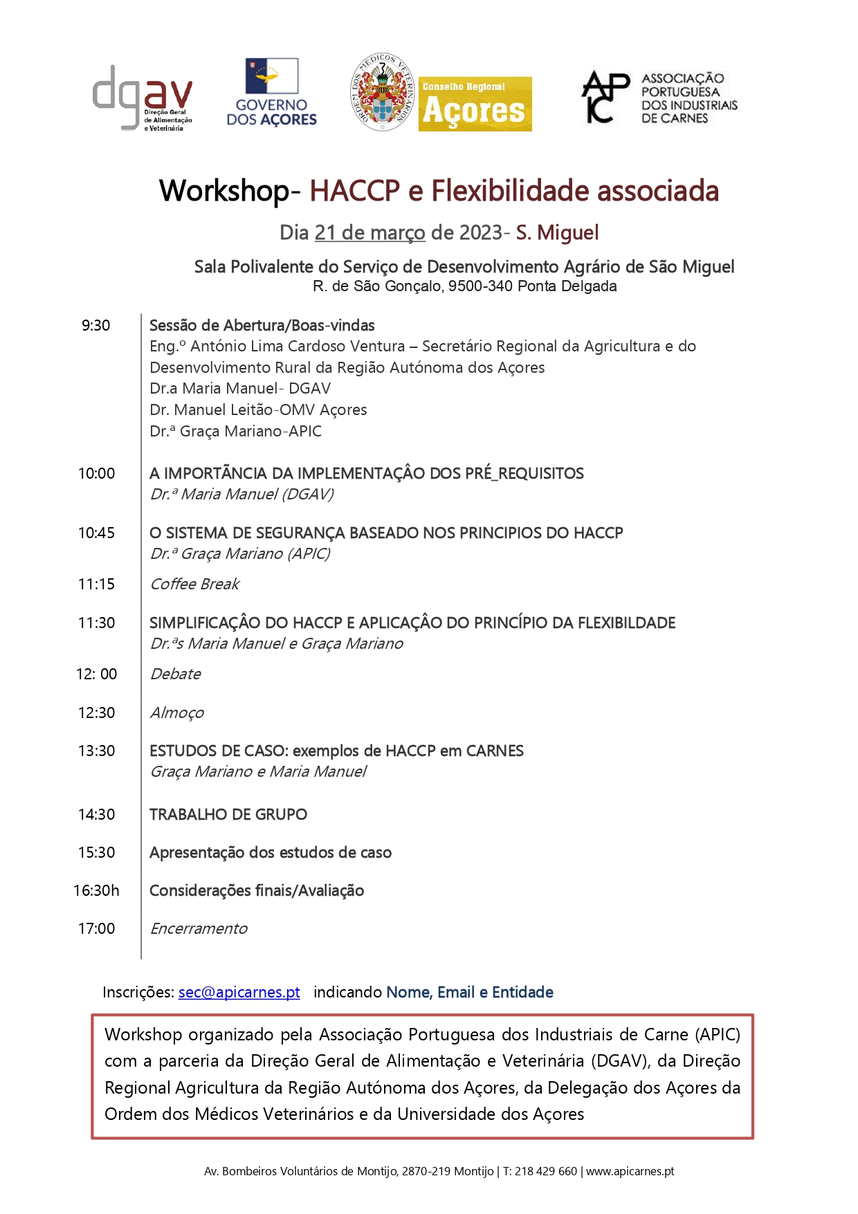 Para inscrições: enviar email com nome, email e entidade que representa para sec@apicarnes.pt