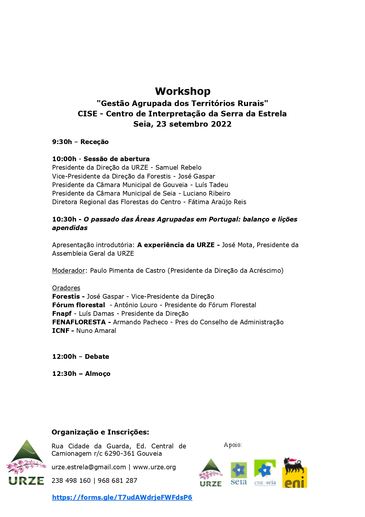 A URZE – Associação Florestal da Encosta da Serra da EStrela, dentro do espírito associativo dinâmico de debate que sempre pautou a sua atividade, vai realizar um Workshop, intitulado “Gestão Agrupada dos Territórios Rurais”, no próximo dia 23 de setembro, em Seia, com um triplo intuito: