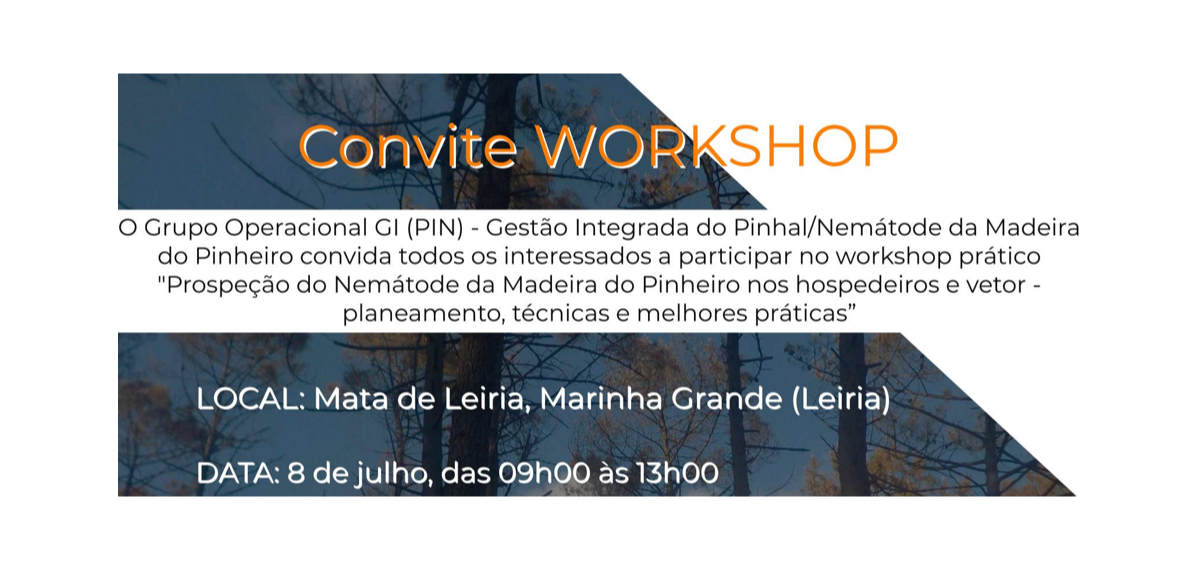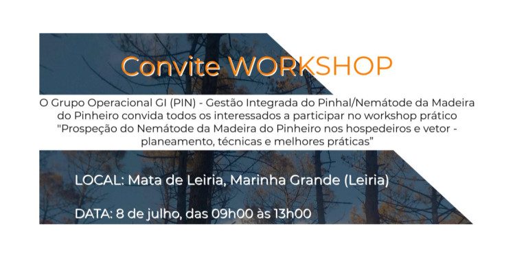 O Workshop “Prospeção do Nemátode da Madeira do Pinheiro nos hospedeiros e vetor – planeamento, técnicas e melhores práticas” terá a orientação técnica e científica dos vários intervenientes no projeto e visa transmitir e consolidar os conhecimentos teóricos e práticos na Prospeção e recolha de amostras de madeira de árvores sintomáticas; Instalação de armadilhas e recolha do inseto vetor.
