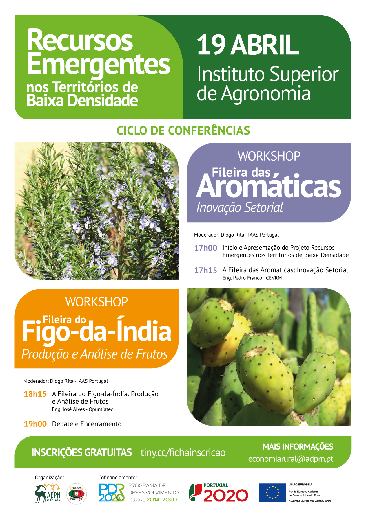O Projeto Recursos Emergentes em Territórios de Baixa Densidade, vai realizar um conjunto de Workshop’s relativos às fileiras das Aromáticas e do Figo-da-índia, que terão lugar no próximo dia 19 no Instituto Superior de Agronomia.